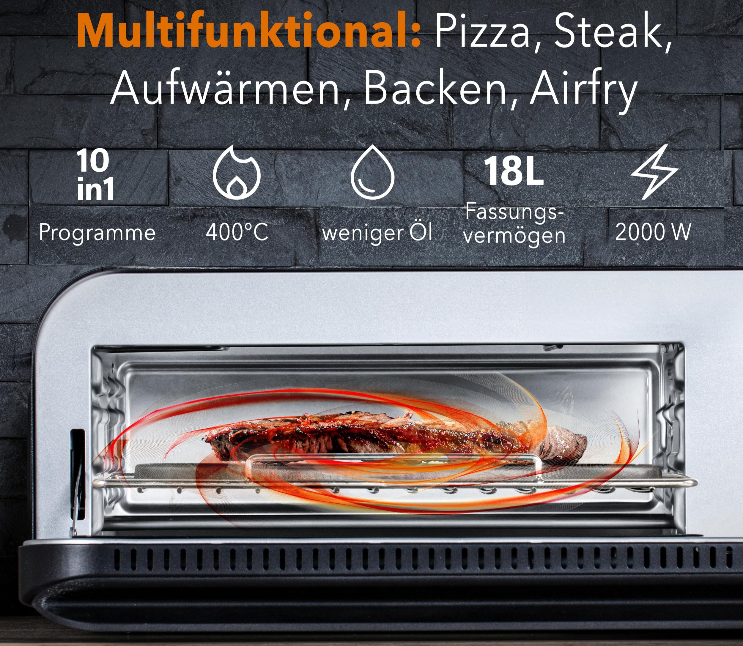 Pizzaofen elektrisch aus Edelstahl mit Pizzastein 1 Kammer 2000 Watt Steinbackofen mit Schamottstein